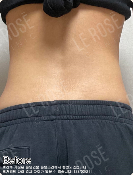 특히 러브핸들과 옆구리 주변에 지방이 비교적 많이 분포되어 있어 허리 라인이 잘 드러나지 않는 상태였습니다.