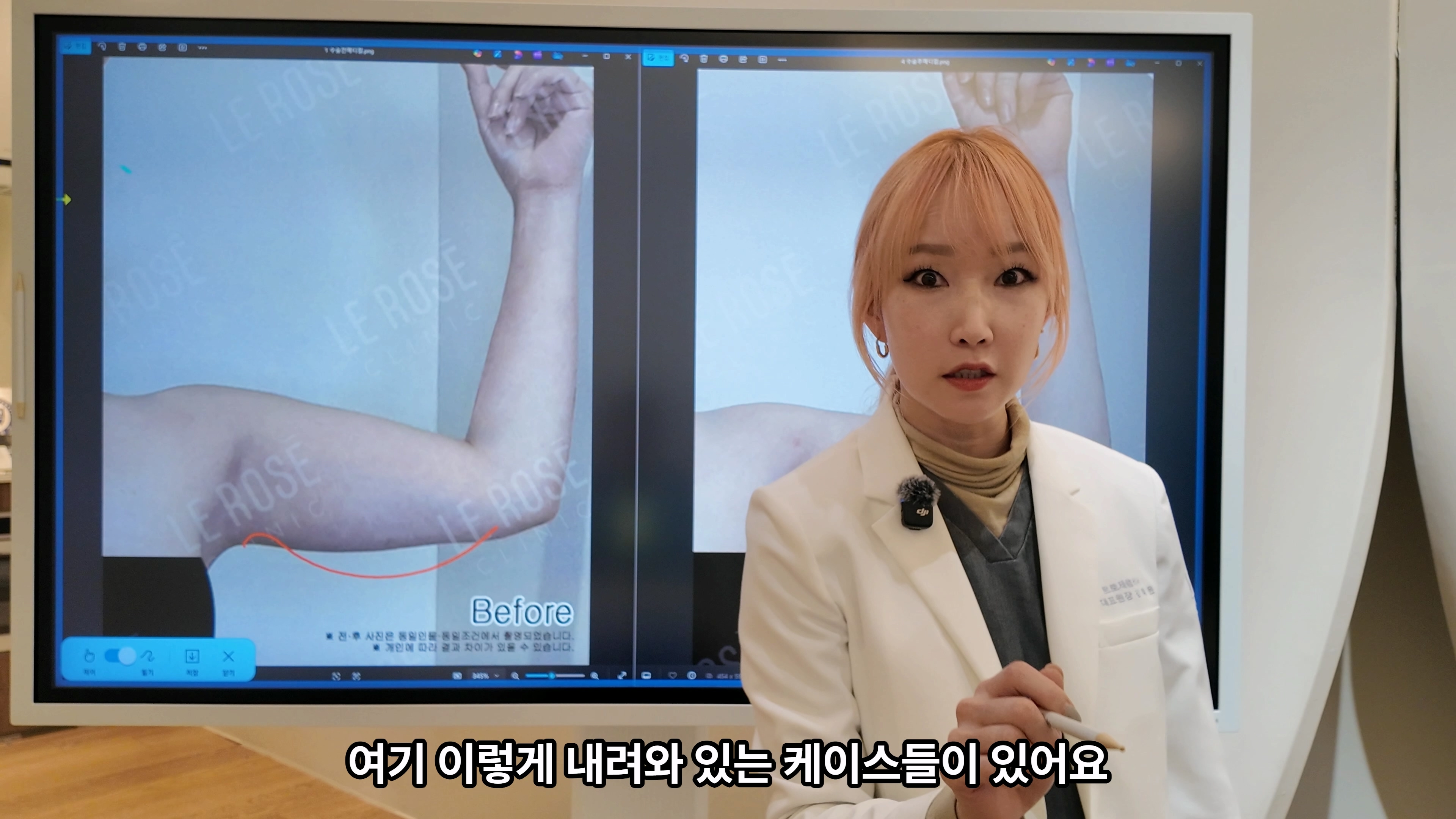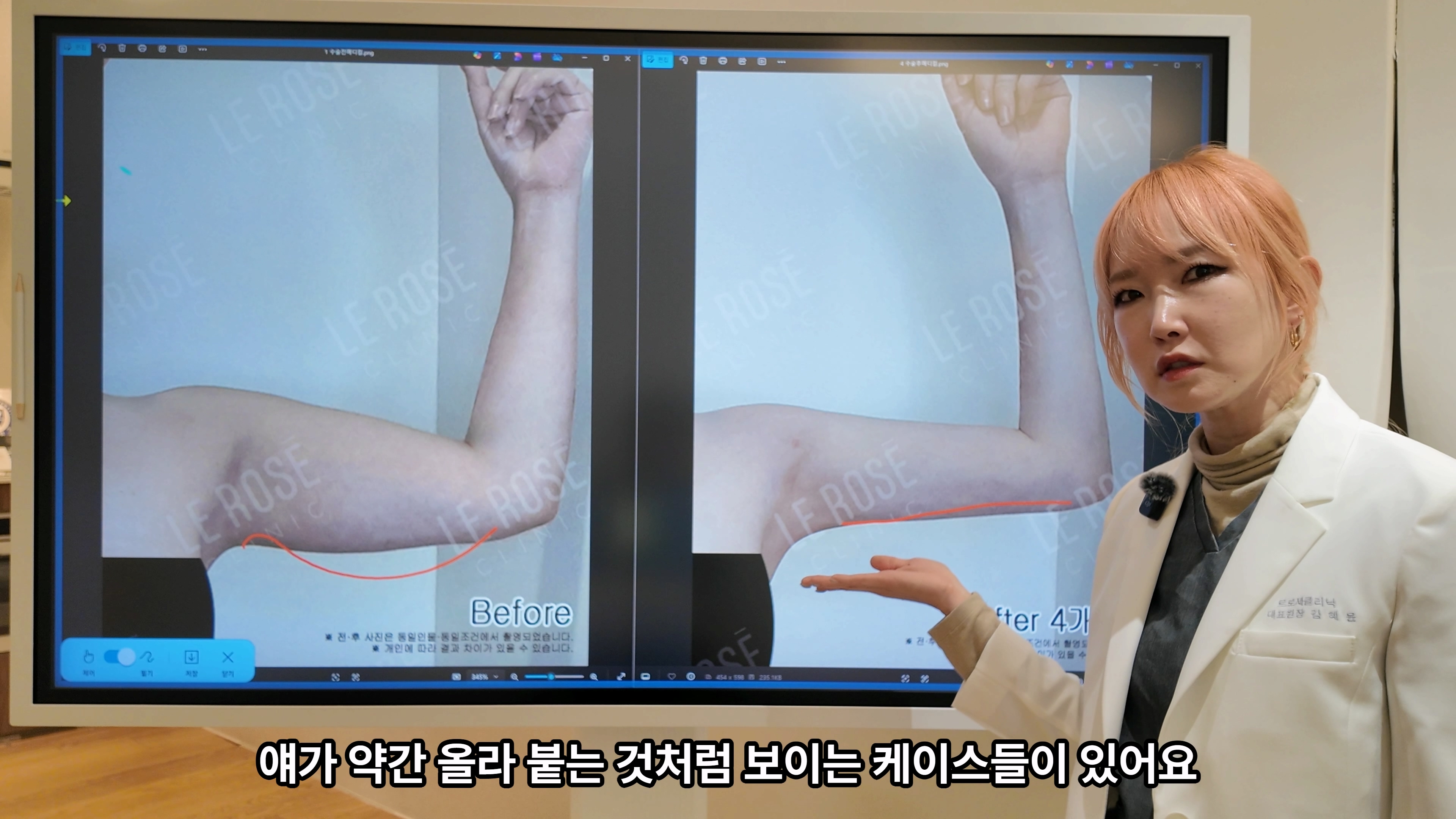 메디컬 촬영에서는 팔을 붙인 상태로 촬영하기 때문에 피부가 더 강조되어 보일 수 있습니다.